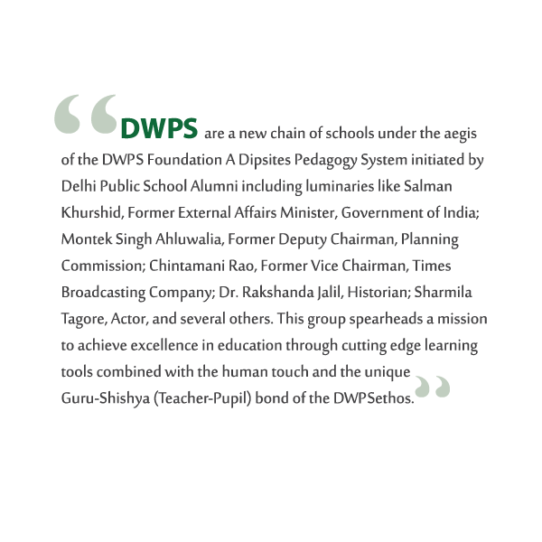 The ambience of the school plays a vital role in the education of the child. The ambience that is serene and tranquil is most suitable for education. Every student experiences a new zeal in himself/herself, if he finds the environment at the school conducive to learning. A lot of care has been taken to make sure that the building of DWPS presents proper motivation to all the young scholars who are to receive education at the school. The architecture of the school is such that one does not experience congestion anywhere. Lush green field just at the entrance connects children with nature and they feel energized for discharging their learning oriented activities at the school. The sight of the play ground and courts fills the children with energy and enthusiasm.